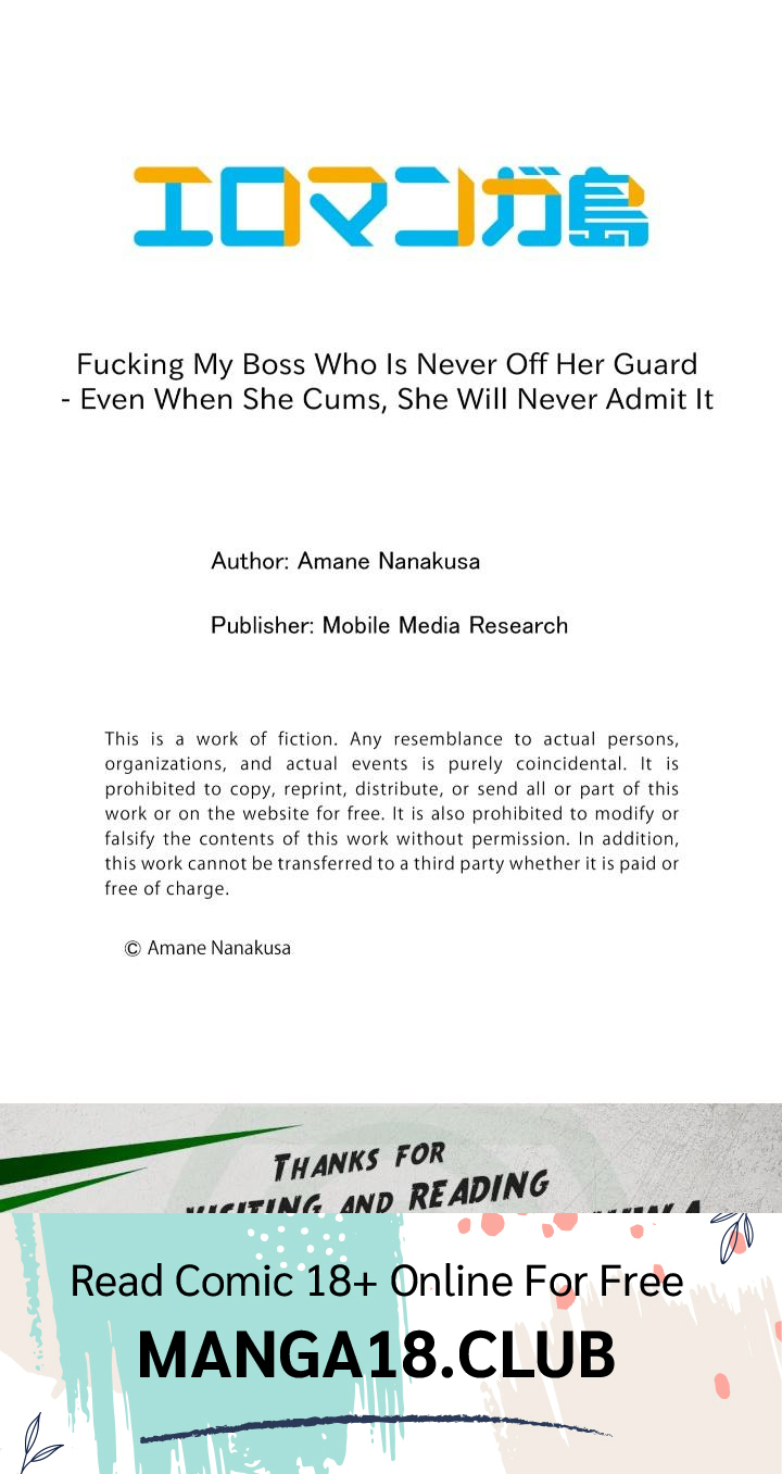 Read the latest manga Fucking My Boss Who Is Never Off Her Guard: Even When She Cums, She Will Never Admit It Chapter 43 at manga18fx . Fucking My Boss Who Is Never Off Her Guard: Even When She Cums, She Will Never Admit It is always updated at manga18fx . Dont forget to read the other manga updates. A list of manga collections manga18fx is in the Manga List menu.