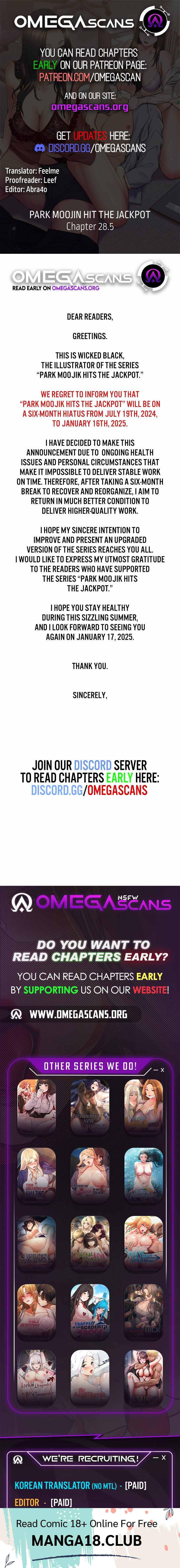 Read the latest manga Park Moojik Hit the Jackpot Chapter 28.5 at manga18fx . Park Moojik Hit the Jackpot is always updated at manga18fx . Dont forget to read the other manga updates. A list of manga collections manga18fx is in the Manga List menu.