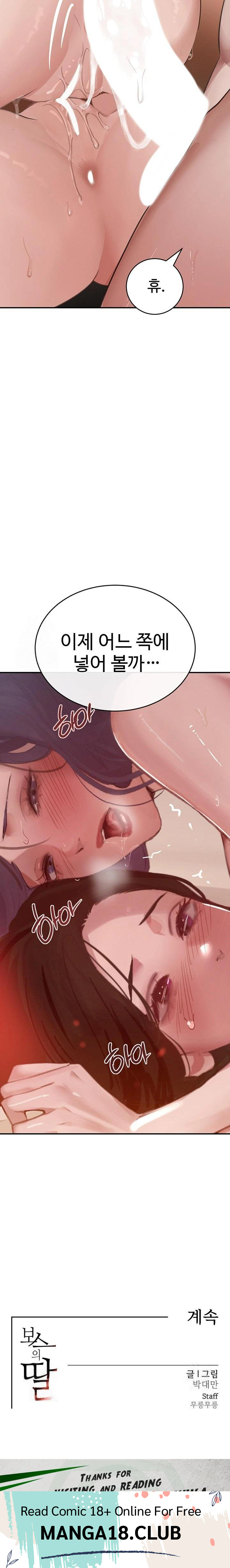 Read the latest manga The Boss’s Daughter Raw Chapter 44 at manga18fx . The Boss’s Daughter Raw is always updated at manga18fx . Dont forget to read the other manga updates. A list of manga collections manga18fx is in the Manga List menu.