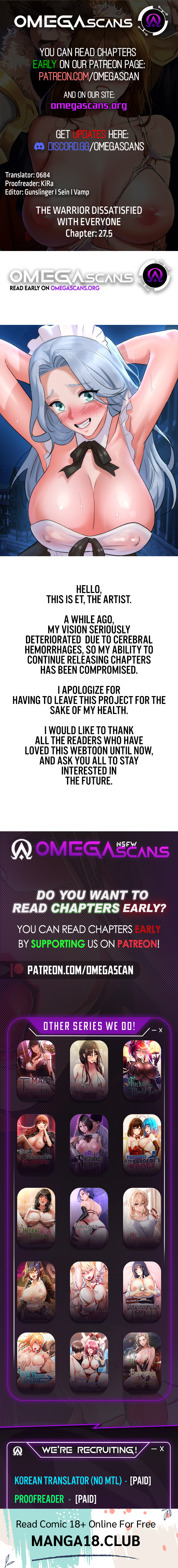 Read the latest manga The Warrior Dissatisfied with Everyone Chapter 27.5 at manga18fx . The Warrior Dissatisfied with Everyone is always updated at manga18fx . Dont forget to read the other manga updates. A list of manga collections manga18fx is in the Manga List menu.